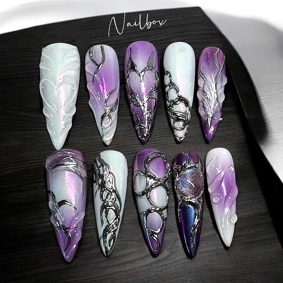 Discover the Y2K Nail Box – bold chrome, butterfly, and holographic nail designs. Trendy, handmade press-on nails inspired by 2000s fashion.