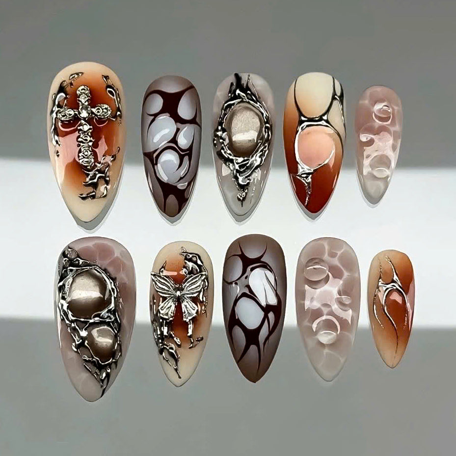 Discover the Y2K Nail Box – bold chrome, butterfly, and holographic nail designs. Trendy, handmade press-on nails inspired by 2000s fashion.