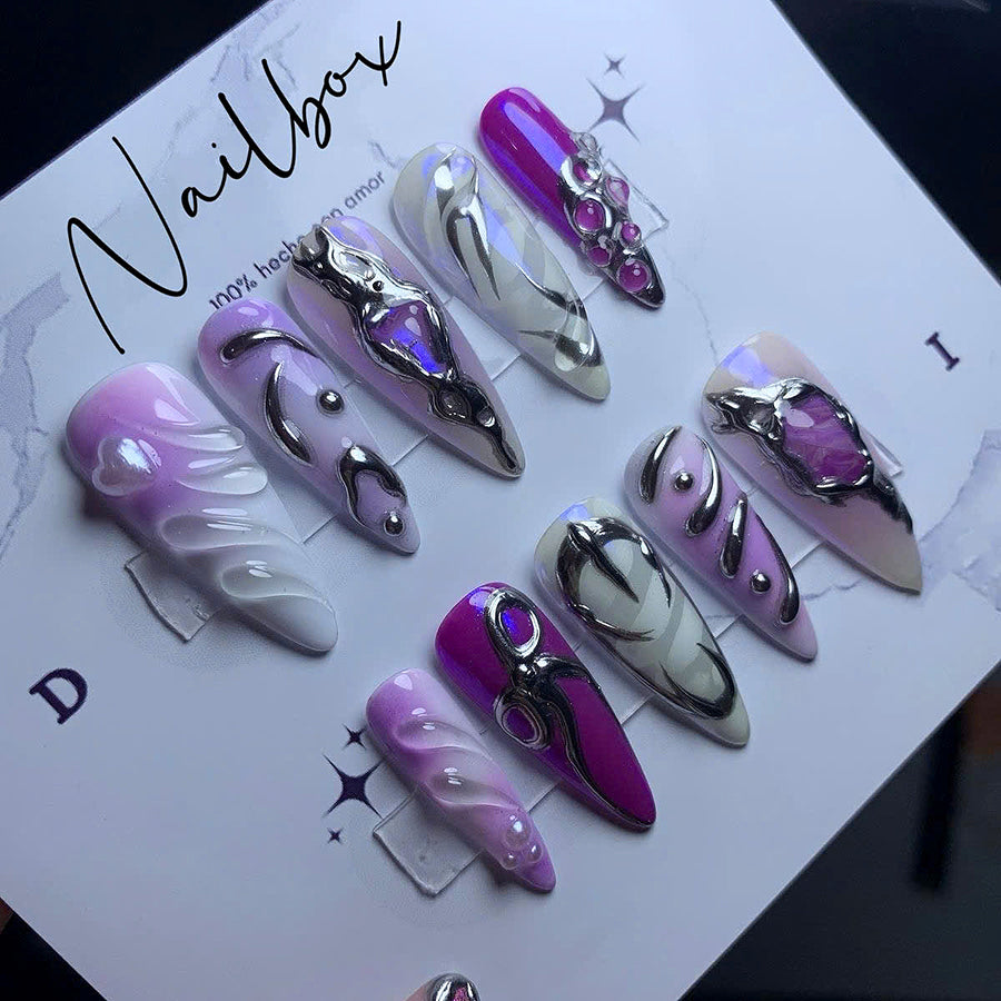 Discover the Y2K Nail Box – bold chrome, butterfly, and holographic nail designs. Trendy, handmade press-on nails inspired by 2000s fashion.