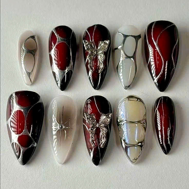 Discover the Y2K Nail Box – bold chrome, butterfly, and holographic nail designs. Trendy, handmade press-on nails inspired by 2000s fashion.