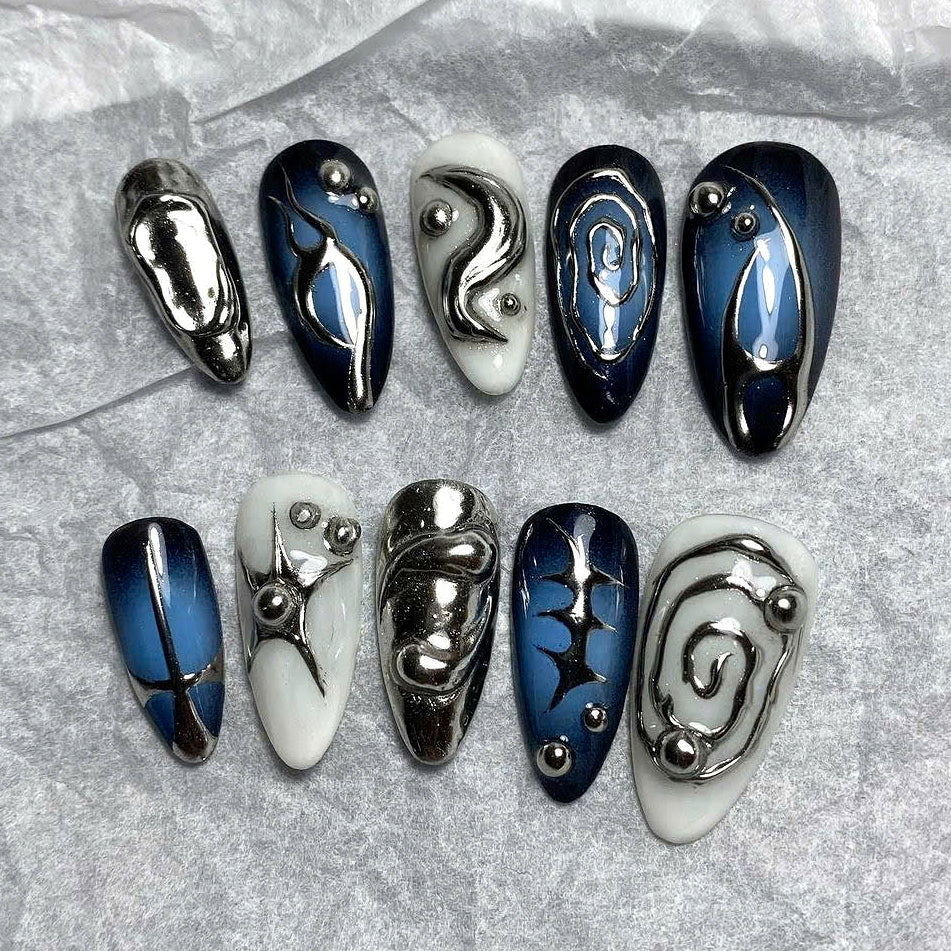 Discover the Y2K Nail Box – bold chrome, butterfly, and holographic nail designs. Trendy, handmade press-on nails inspired by 2000s fashion.
